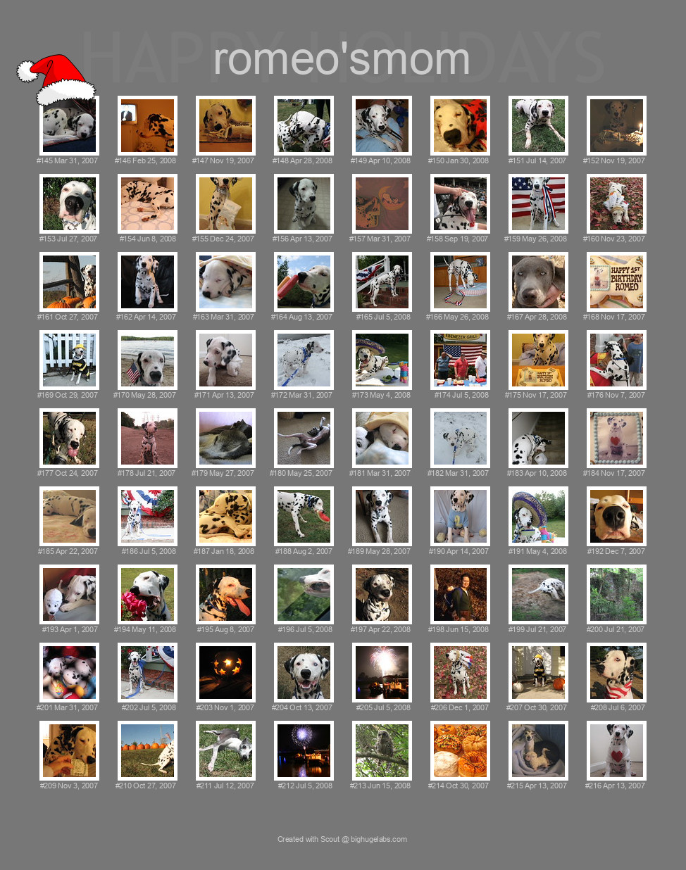 1. cozy spot, 2. hey, he's pretty funny, 3. hmmm...this looks better over here, 4. you're my kinda girl!, 5. huh? what steak knife?, 6. big black bear nose hibernating, 7. nooooo!!!!!!!!! i don't need a bath!, 8. make a wish!, 9. i love you, mom, 10. there's a first time for everything!, 11. all i wanted last Christmas was a puppy..., 12. friendly little ghost face, 13. goodnight cow jumping over the moon, 14. hey kid...run and get me a hot dog, 15. proud puppy, 16. who you callin' turkey?, 17. i thought you said he was coming!, 18. snacks!, 19. first day at home, 20. eeny, 21. posing puppy, 22. the great ribbon caper, 23. what kind of puppy are you?, 24. puppy cake, 25. , 26. O say can you see, by the dawn's early light,, 27. whatcha got?, 28. winter wonderland, 29. boy would i love to rip this thing up!, 30. face of the day, 31. is that really me?, 32. how about a piggyback ride?, 33. , 34. rko radio pictures puppy, 35. church mouse, 36. little exhibitionist, 37. snuggly puppy, 38. snow bunny, 39. t.p. bandito, 40. my funny valentine, 41. little angel, 42. perfect photo gone wrong, 43. goodnight baby bird, 44. i got me a nice piece of watermelon to gnaw on!, 45. i'm getting tired of waiting...this isn't fun anymore, 46. little duckling, 47. southern beau daintily sipping his cocktail, 48. i'm vewy sweepy, 49. dolly, 50. , 51. flambe tongue, 52. i'm king of the world!, 53. the cat that ate the canary, 54. , 55. that's what i call a happy butt!, 56. hidden treasure, 57. pup tent, 58. happy 4th of july everybody!, 59. feliz dia de los muertos, 60. my little goofball, 61. red, white, and blue, 62. chief spotted dog, 63. sparky the fire dog, 64. i pledge of allegiance to the flag..., 65. can i eat it? no, silly!!!, 66. all american puppy, 67. mr. magoo, 68. blue sunburst, 69. odd fellow, 70. sugar and fat and carbs, oh my!, 71. goofy boy, 72. will you be my valentine?